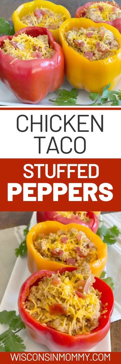 Then I started playing around with different stuffed pepper fillings and using only yellow, orange and red peppers and landed on a few stuffed pepper recipes that I really do like. My favorite is this Chicken Taco Stuffed Pepper recipe!