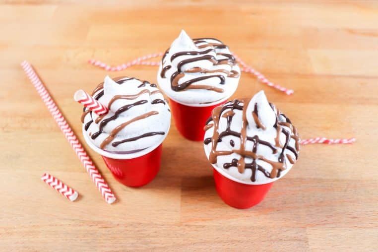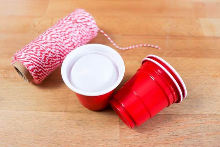 4. Cut a 1-inch piece from the straw and use a dab of hot glue to attach to the top of the cup.