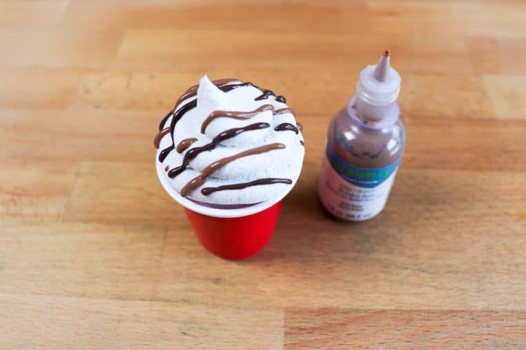2. Fill the piping bag with caulking and pipe it onto the top of the cup in a swirl.