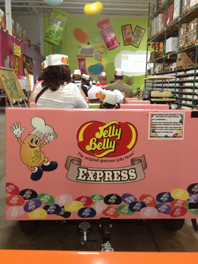 If you are looking for a chance to see jelly beans being made live, you will be a bit disappointed. The factory tour consists of everyone getting on a small train and travelling around the inside of the warehouse, stopping several times to watch videos and see simulations of how the beans are made. It’s cute, but may not hold the interest of younger children.