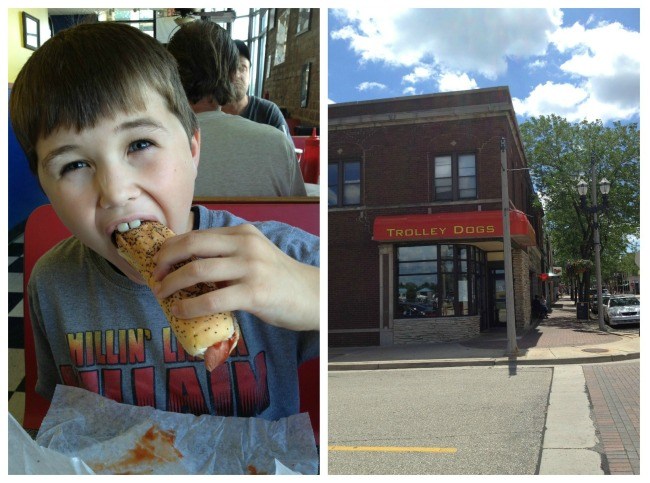 By the time we were done with the museum, it was about time to eat lunch. Knowing LJ loves hot dogs, I remembered seeing a hot dog restaurant across from the Jockey Factory store on 6th. We headed out to Trolley Dogs to grab some food. We had a hard time choosing from all of the hot dog choices! We both wound up just getting a basic dog with mustard, ketchup, and relish and boy were they good!!