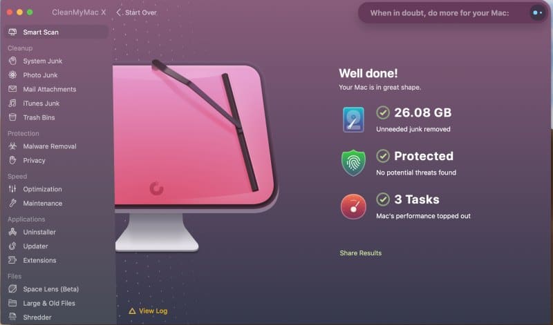 Other than cleaning up my computers and making them as fast as they were when they were new, I love that CleanMyMacX gives me regular reminders of when it is time to run it again so I don’t fall too far behind. The app’s utility dashboard is attractive, efficient and powerful. It allows you to clean up your files, speed up your machine and protect it with just one click.