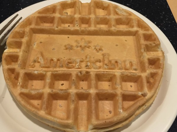 But the crown jewel was definitely the waffles! They have several DIY waffle makers (that are idiot proof – even I can make the perfect waffle on them!) and the best part is that each waffle has the AmericInn logo baked right in. How cool is that?