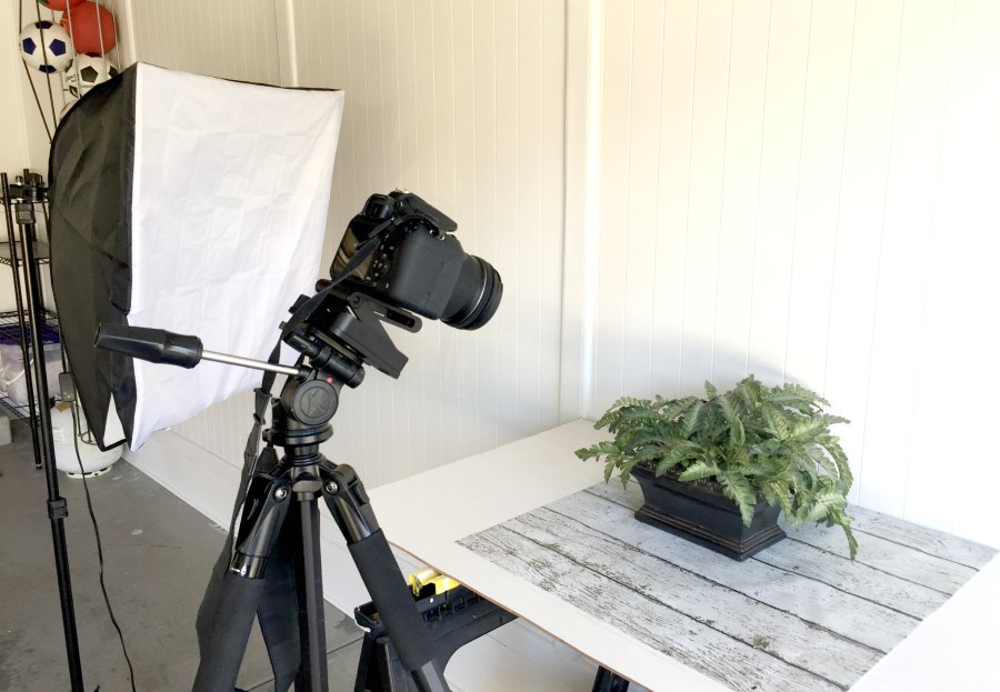 Tip #5 – Turn your garage into a space that will inspire you to keep it clean. Once our garage was clean and spruced up, I set about creating a little spot where I can take photos. As I mentioned in my last post, the light in our house can leave a bit to be desired and the garage receives a ton of natural light. With the gorgeous white bead board, it is the perfect place for product shots. I even did some late afternoon shots by bringing out my light kit.
