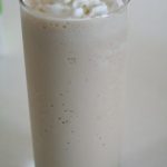 - Add 3/4 C milk (2% tastes best for this) and 1 1/2 C ice cubes. Blend until smooth and frothy.