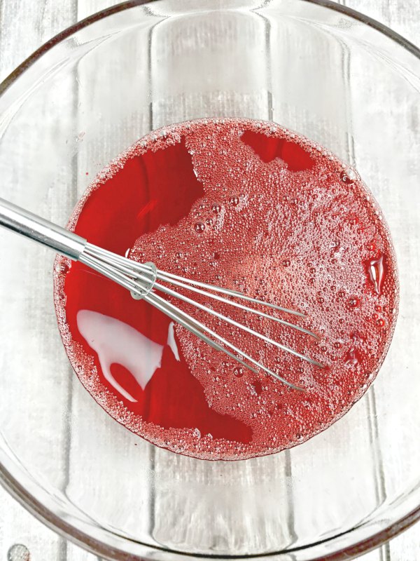 - Wait for the red jello to harden (about 10 minutes on the counter and then 30 minutes in the fridge).