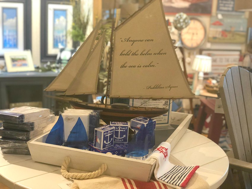 The weather actually cooperated with us and the rain held off until we were off the boat. We headed back to the shopping area to check out a shop we had heard we shouldn’t miss. The Cornerstone Shop is almost like a bunch of smaller shops in one. They have several different rooms, each with a different and often changing theme. One room is all beach and lake home decor, another is trendier clothes and items the Gen Z and Millenial crowd might like. (Although I did snag a necklace from this room, so I guess that makes me hip, right? Or is not hip to say “hip” anymore??)