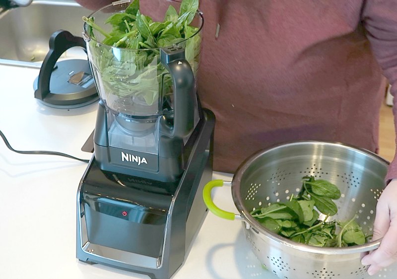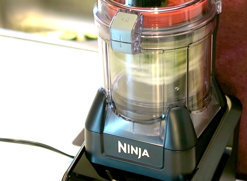 I’m talking about the Ninja® Intelli-Sense™ Kitchen System with Auto-Spiralizer™. The one smart base transforms into four high-performance appliances depending on which top you put on it. There is a 72 oz. Total Crushing® Blender, 64 oz. Precision Food Processor™, 24 oz. Single-Serve Cup, and Auto-Spiralizer. Since our kitchen is not huge, I love that we can leave the one base on the counter and just switch out the tops as we need them.