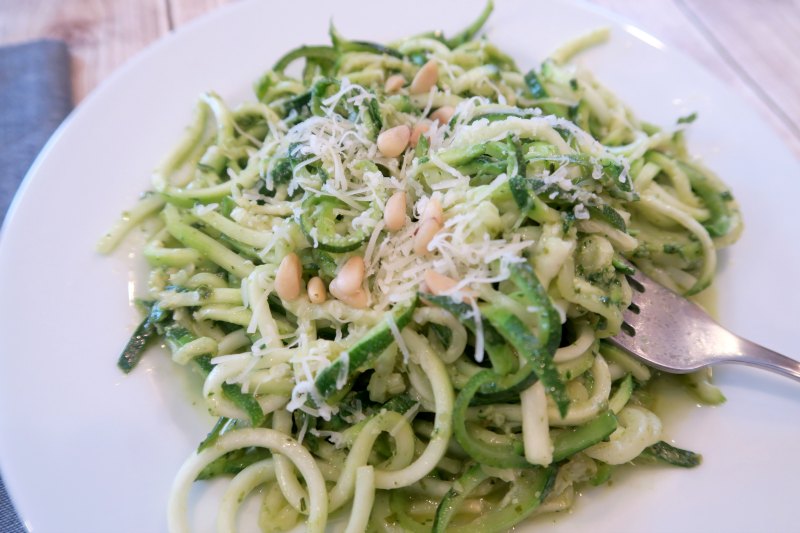 I decided to make some basil pesto to go with my zoodles. I also grow basil in the summer and pesto is one of my favorite things to make. It seems really fancy but is actually incredibly easy to make. And it’s even easier now with my new system! Check it out in the video below.