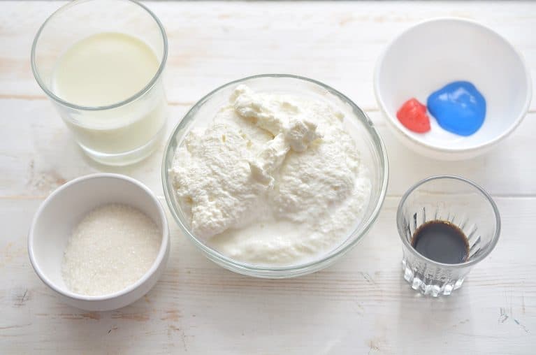 Now, divide that mixture into three bowls. Leave one plain (that’s your white layer), and color the other two with the red and blue food coloring. A little goes a long way, so start slow and stir until the colors are nice and bold.