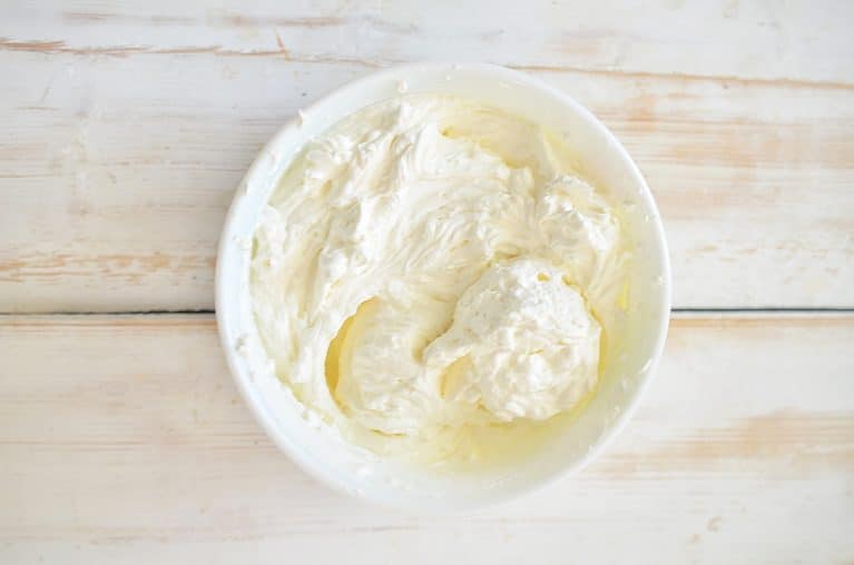 Once your cream is holding its shape, mix it together with the cream cheese, sugar, and vanilla. You’ll end up with a smooth, slightly sweet base that’s basically the edible version of a hug.