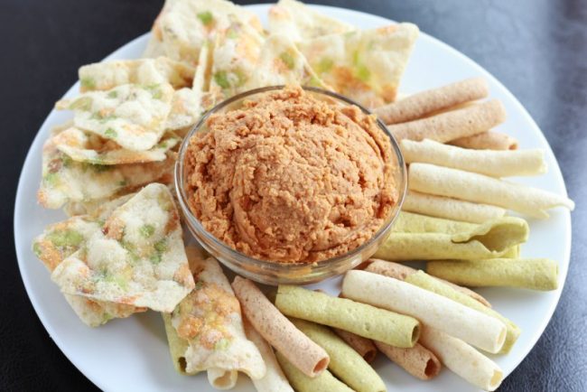 Now this is a snack you won’t feel guilty about. The hummus would taste delicious, with the roasted peppers and garlic! And to have that with some Saffron Road Legume Snacks is a winner combo!