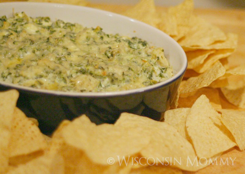 We hosted a Packer party here where I had gone out and bought a restaurant-chain’s supermarket version of their famous spinach and artichoke dip. It was expensive and honestly kind of greasy once it was cooked. I starting wondering if I could come up with my own recipe that was a tad healthier but still tasted good. I collected a pile of Spinach and Artichoke Dip recipes and started going through them one by one, making adjustments each time until I finally created one I really liked.