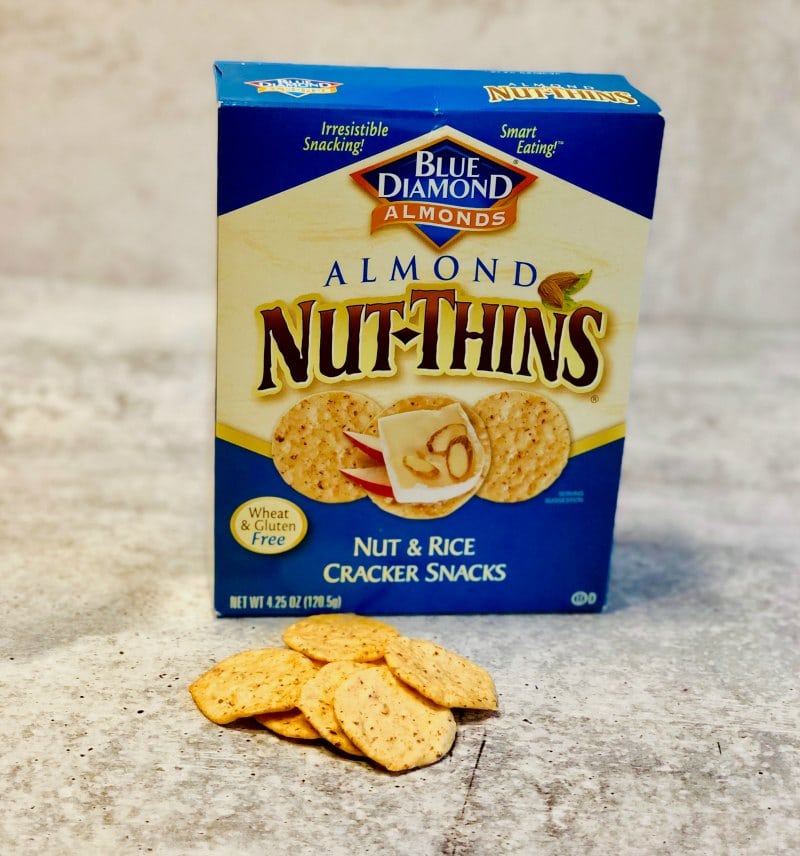 They are wheat and gluten-free so even our gluten-free friends and family can enjoy them. They are a fun and crispy alternative to traditional crackers and are made with real Blue Diamond almonds. We love dipping them into some Sabra Roasted Red Pepper Hummus.